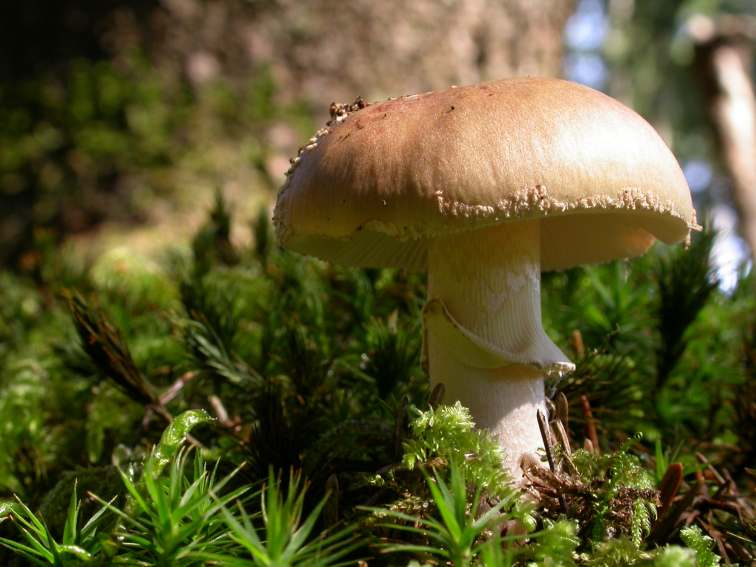 Selbst dieser Perlpilz brachte es im kuscheligen Moos nur auf 7 cm.