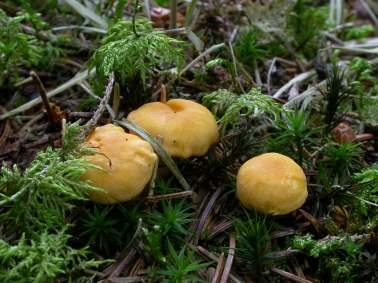 Pfifferlinge. Heute waren sie groß genug, um sie zu ernten.