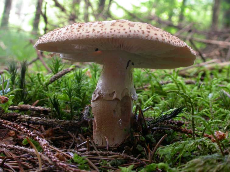 Der nächste helle Fleck entpuppte sich als Perlpilz, ganz alleine stand er.
