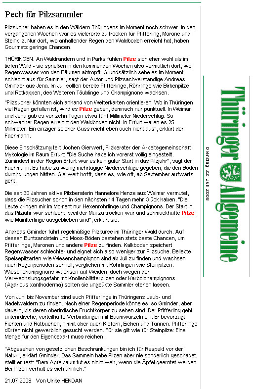 - Re: Die Kollegen zur Pilzsituation in Thüringen -- Christoph G -- 23. Juli 2008, 09:09 Uhr