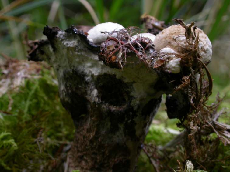 Der Wirt dürfte ein Schwärzender Täubling (gewesen) sein.