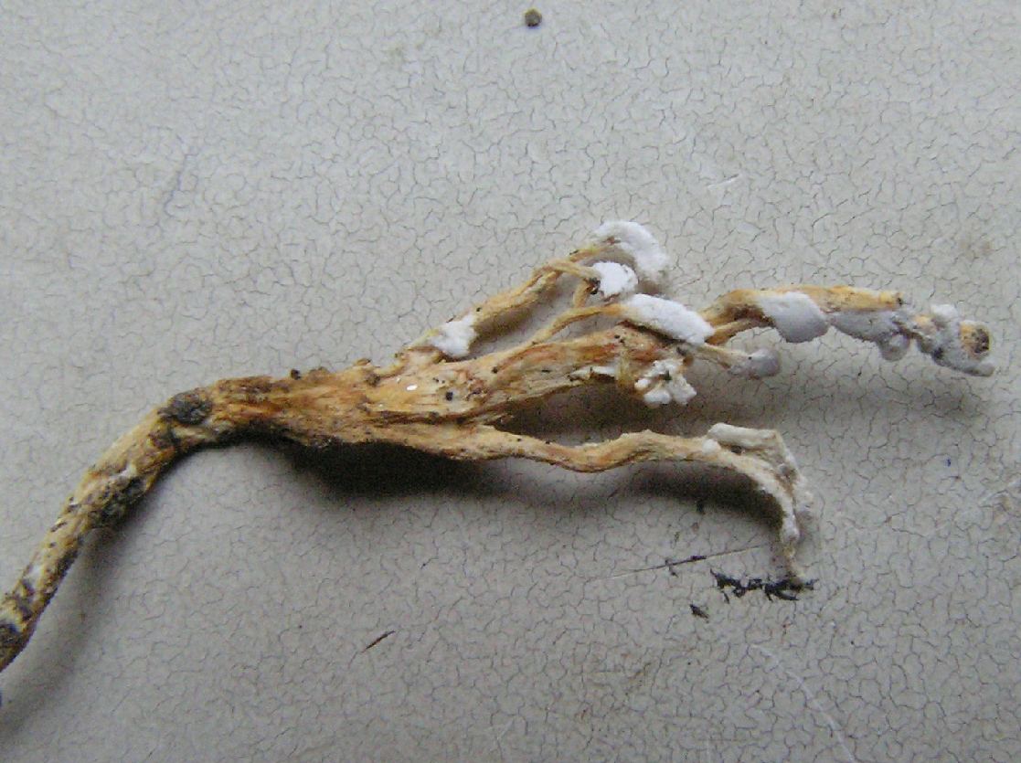 kann jemand damit etwas anfangen (das ist nur ein kleiner Teil vom Ganzen). Das Ding wuchs auf einem vorgrabenen Stückchen Zweig, das ganz weiß von Mycel war. Deshalb denke ich, dass es ein Pilz ist. Das Teil war ganz weich, also sicher keine Flechte. Auch am eine vergammelnde Koralle glaube ich nicht so recht.