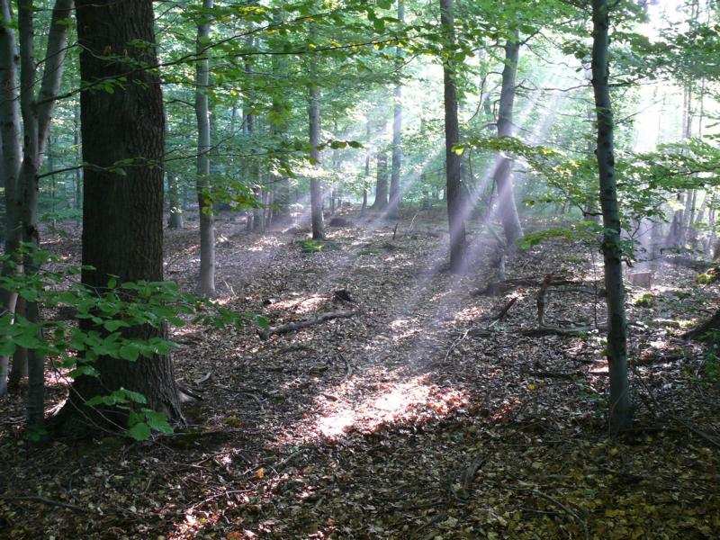 Zur Einstimmung ein Foto von heute morgen im Schaumburger Wald. Die Sonnenstrahlen erwärmen den feuchten Waldboden. Da müssen die Steinis ja aus dem Waldboden schießen.