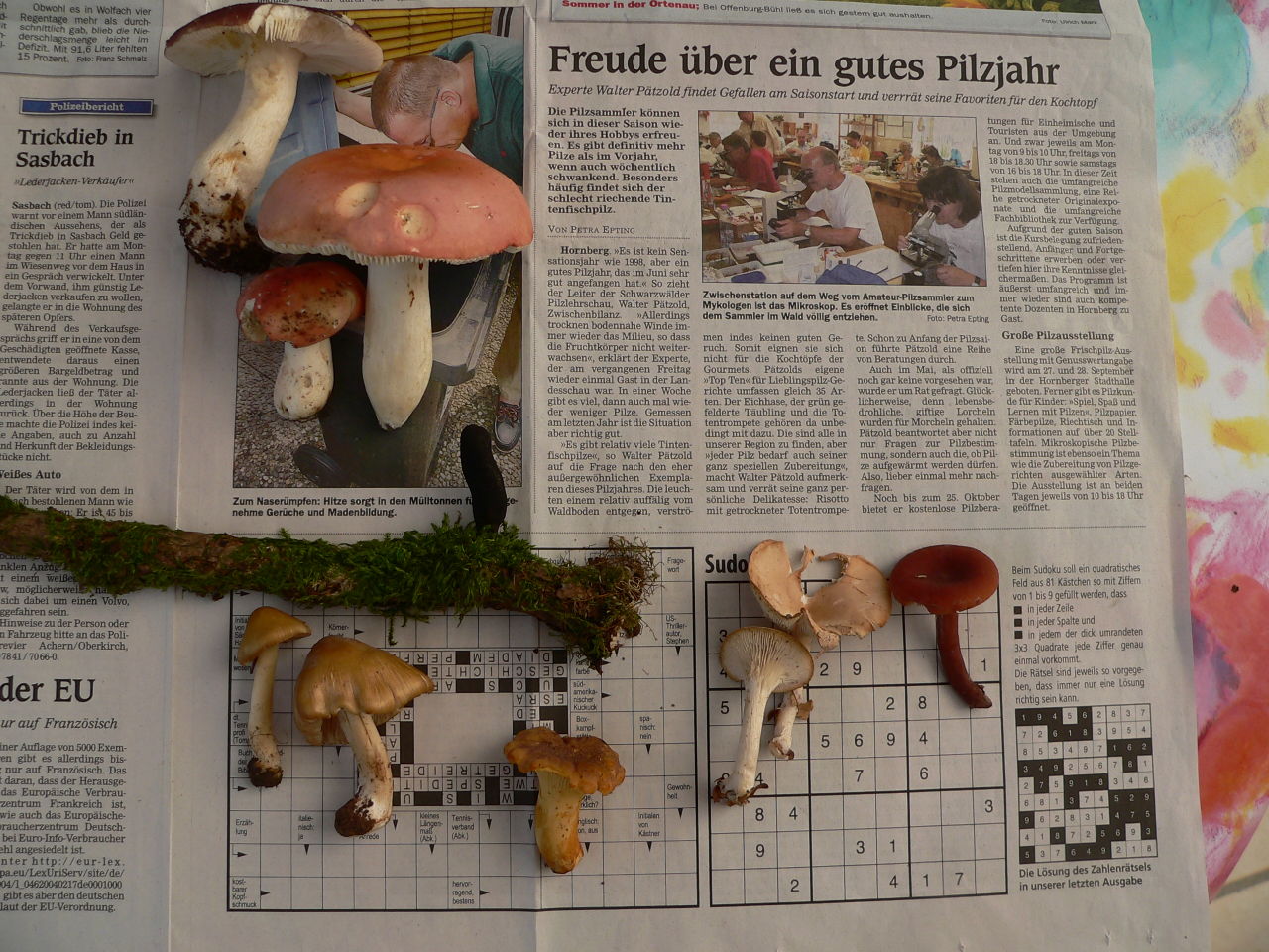 dient mal wieder als Bildhintergrund. Habe diesen Ausschnitt vom 7. August aufgehoben. Vielleicht erkennt sich da jemand wieder. Die Begeisterung von Walter kann ich noch nicht teilen. Habe heute einen kurzen Gang durch mein Revier gemacht. War recht dürftig. Ein kleines Pfännchen voll Pfifferlinge gab es eben.