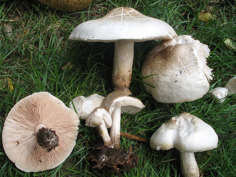 und wieder stand ich ganz blöd da! Diese Pilze wuchsen auf Holzhäcksel. Der große hatte einen Hutdurchmesser von gut 20 cm. Hier hab ich spontan auf Leucoagaricus getippt. Ich werd ihn morgen mikroskopieren. Habt ihr noch ne Idee?