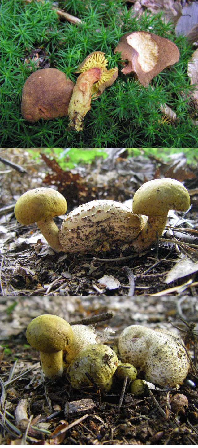 Als erster 3 Exemplare vom Goldblatt (X. pelletieri) und viele Exemplare vom Schmarotzer Röhrling (X. parasiticus) auf einem neuen Fundort. Der alte Fundort war pilzfrei. Hier nur 2 Bilder. Jedenfalls ist der Schmarotzer bei uns keine Seltenheit. Alle stehen noch im Wald und wurden geschont. Leider gibt es bei uns einen Pilzsammler, der auch sowas absäbelt, wenn er es findet. Ich ging ohne Mahlzeit nach Hause aber irgendwie doch zufrieden. -Rebecca