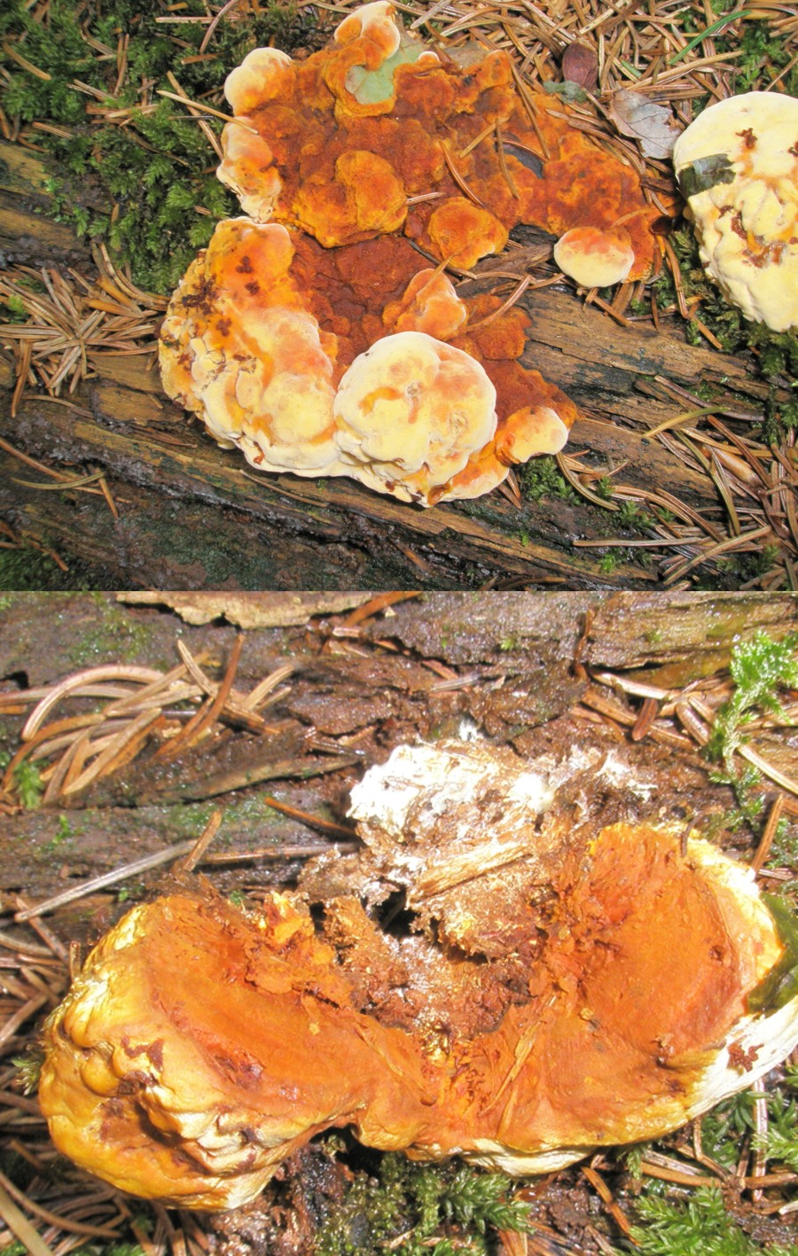 und ich meine Evchen hat ein paar Beiträge früher (ebenfalls unbeantwortet) den gleichen eingestellt unter "Feuerwerk". Auf der von Peter als Rotrandiger Baumschwamm angesprochenen Pilz, kommt nach meinem Studium irgendwie überhaupt nicht hin. Ich denke eigentlich mehr in Richtung Saftporling. Hier noch mal dieser Pilz: