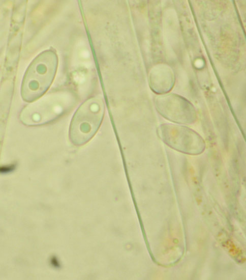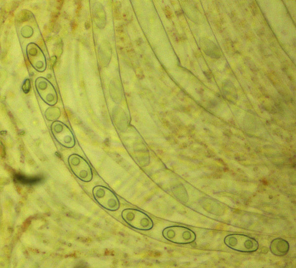 Asci: 8sporig, Sporen in den Asci mit 2 Tropfen (Wasser)