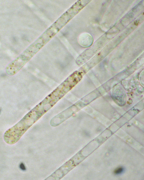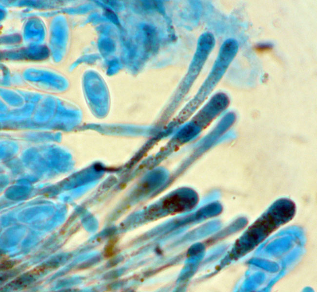 Auch in Baumwollblau sind die Auflagerungen an den Paraphysen gut