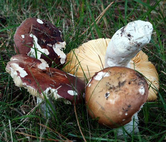 Diese Gruppe habe ich heute unter einer einzel stehenden Kiefer im Rasen auf Buntsandstein gefunden. Völlig mild, sport noch aus, sollte aber fast gelbes Sporenpulver haben. Ich halte das für R. cessans. Andere Vorschläge?
