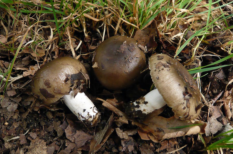 Hut: ziemlich dunkelfarbige Brauntöne, schmutzig graubraun, sepiabraun, dunkelbraun, auch schwarzgrau,