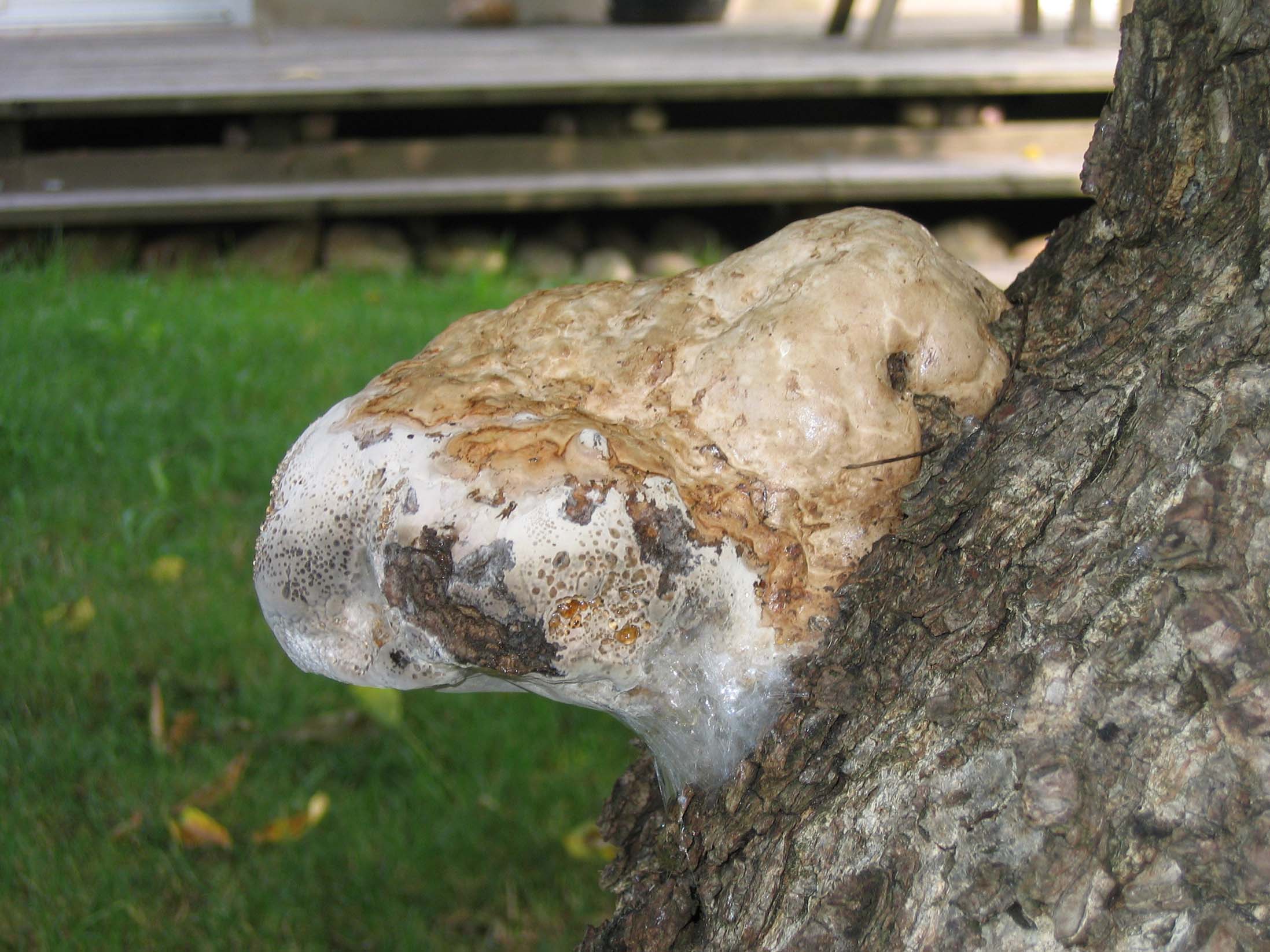 Pilzfruchtkörper gesehen an Nussbaumstamm in ca. 1,00 Höhe.