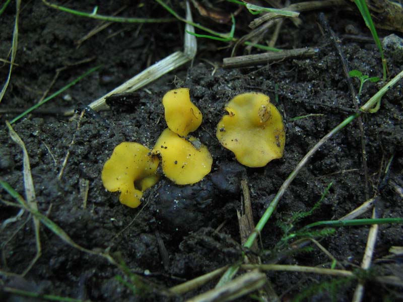 Das müßte Cheilymenia vitellina - Dottergelber Erdbordstling sein. Den "jagen" wir schon seit längerem, bislang hat er sich immer gut vor uns versteckt ;-)