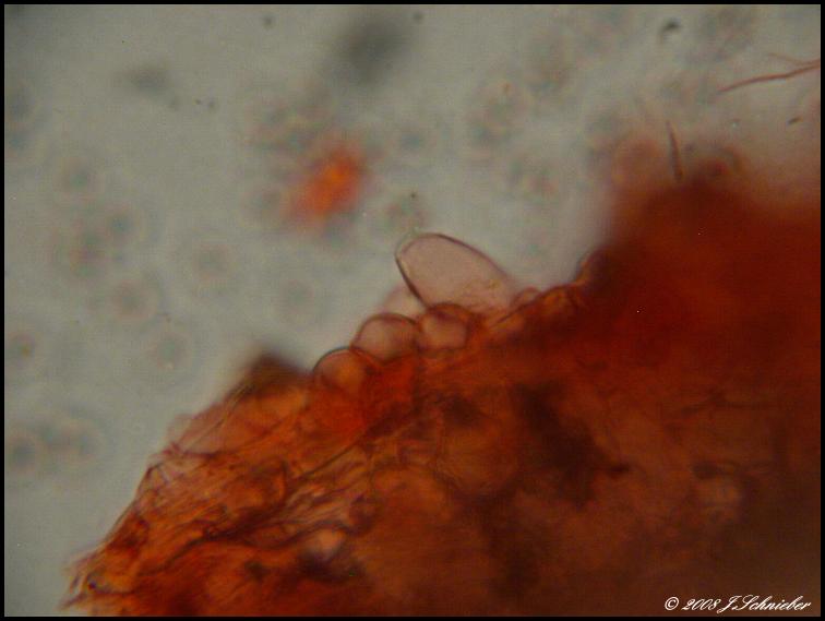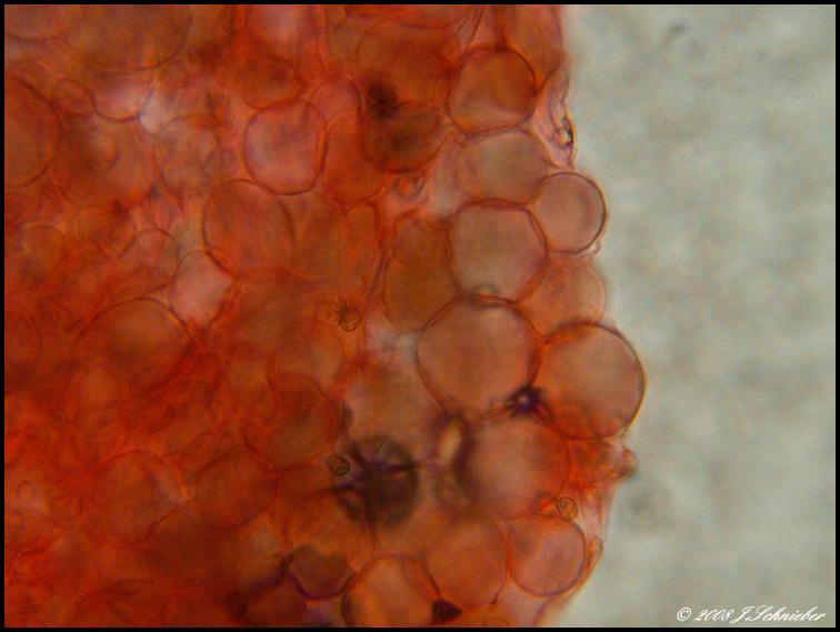 die Huthaut hat rundliche Zellen,ich meine Schnallen gesehen zu haben