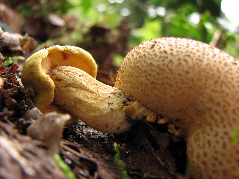 Und heute im Schellenberger Wald über Röhrlingsminis gestolpert, denen wohl der Waldboden zu schnöde war und die sich als Substrat die reichlich sprießenden Kartoffelboviste ausgesucht hatten.