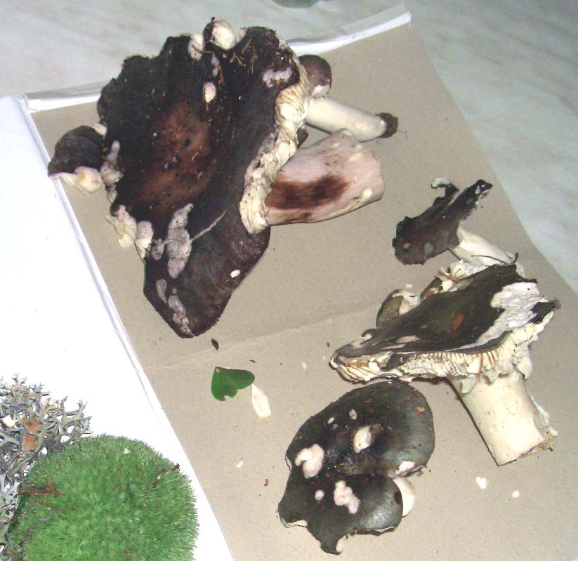 Hallo Gaby, beinahe, aber knapp daneben. Es dürfte sich um den Papageien-Täubling (Russula ionochlora) handeln. Das größere Exemplar zeigt einen deutlich violett überlaufenen Stiel. Das wäre für den Frauen-Täubling höchst untypisch. Und in der Tat haben meistens solche Exemplare dann auch brüchige Lamellen, wie auf Deinem Bild bei dem umgedrhten rechten Exemplar schön zu sehen ist. Der Frauen-Täubling hat aber biegsame, weiche Lamellen, die bei Druck sogar matschig werden, aber nicht brechen! Würdest Du ein Sporenabwurfpräparat machen, also den Hut ein paar Stunden auf weißes Papier absporen lassen, dann hätte Dein Pilz ein leicht cremefarben getöntes Sporenpulver, während der Frauen-Täubling rein weißes hat. Diese Verwechslung kommt häufig vor und wäre auch unschädlich, denn auch der Papageien-Täubling ist bestenfalls für sehr feine Zungenspitze ein wenig schärflich und daher würde er wohl im Mischgericht kaum unangenehm auffallen. Ein Reingericht wäre aber sicherlich kein kulinarisches Highlight. Wenn Du es vom nicht-speisepilz-Standpunkt aus betrachtest kannst Du Dich freuen, denn der Papageien-Täubling ist deutlich seltener als der Frauen-Täubling. Ich habe Dein Bild mal etwas farbkorrigiert und aufgehellt. Entweder macht mein schöner alter Monitor demnächst die Biege, oder das Bild von Dir war tatsächlich etwas dunkel. Wie seht Ihr denn das, ist das von mir korrigierte jetzt zu hell? beste Grüße,