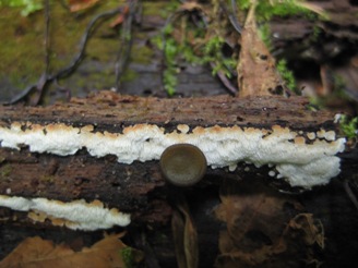 Das Rätselstellen macht Spaß - ich hoffe, ich werde nich süchtig davon. Dieser kleine, düstere Becherling wächst auf nassem Holz, das im Bereich von Bächen liegt. Er hat ziemlich kleine, glatte und leere Sporen. Ein Tipp: die Ascus-Wände färben sich blau.