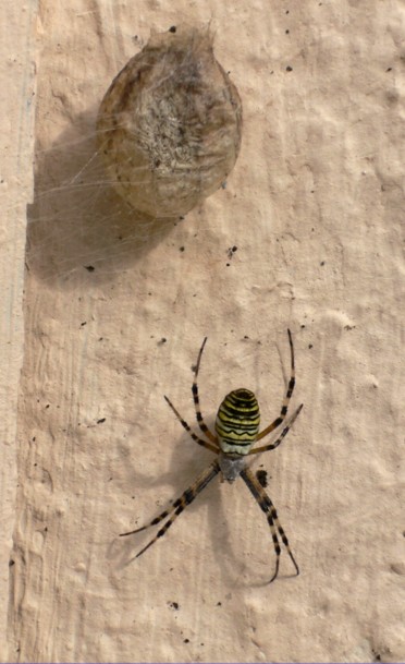 Heute nach der Arbeit entdeckt: kein Pilz sondern eine ziemlich große Spinne direkt an meiner Haustür. Ist das eine Vespenspinne? Und das komische Gebilde? Ein Kokon?(ist da etwas drin?) Da ich nicht nur Pilze "liebe" sondern auch Tiere kann mir vielleicht jemand sagen ob ich die Spinne mit ihrem - denke ich - Nachwuchs ohne (ihr) zu schaden von der Türe wegbekomme? Möchte schließlich keinen achtbeinigen Nachwuchs in der Wohnung :) - bei uns ist die Türe nämlich sehr oft offen. Vielen Dank für Eure Hilfe