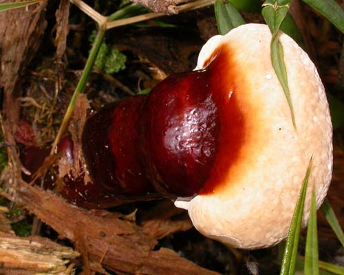 wenn da wirklich keine Laubbäume, aber Tannen stehen, wird es wohl der dunkle sein, Ganoderma carnosum: