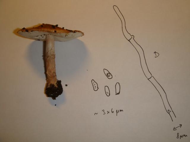 Liebe Pilzgemeinde Ich stehe wieder einmal mit der Bestimmung an. Folgender Pilz wollte ich zuerst mit Lepiota fuscovinacea ansprechen. Die mehrfach septierten Hyphenden (D)der Hutdeckenschicht mit braunem Inhalt passten gut. Die Sporen sind ebenfalls ähnlich gross wie in der Literatur angeben. Doch was mir gar nicht gefällt: Schnallen sind deutlich vorhanden, und die Hutoberfläche hat keine weinroten Farben, sondern ausschliesslich braune Farben (ocker). Kann jemand den Schirmling einordnen? Viele Grüsse