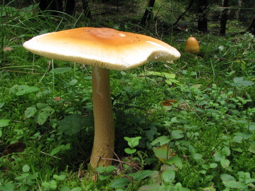 Ich glaubte heute meinen Augen nicht zu trauen - ich glaube ich habe Orangebraune Scheidenstreiflinge (Amanita crocea) gefunden. Für mich der absolute Erstfund. Sehr ästhetische Pilze, schöne Farben, sehr ansehnlich. Stimmt es, dass man die auch als falsche Kaiserlinge bezeichnet? Was sagen die Experten - ein seltener Pilz? Falls die Experten den Fund bestätigen, würde ich mich gern an die kulinarische Verwertung wagen ... :) Viele Grüsse, Matthias