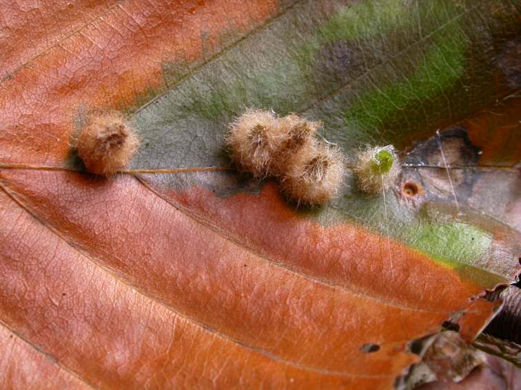 Auf einem Buchenblatt entdeckte ich diese Wuschels, niedliche Geschöpfe.