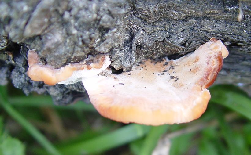 Hallo, diesen Trameten - ähnlichen Pilz fand ich eben an einem umgestürzten Eichenstamm. Ich kenne keinen rötlich bis orangen Porling, der das sein könnte - oder ich steh auf´m Schlauch. Hat jemand von Euch einen Tip.