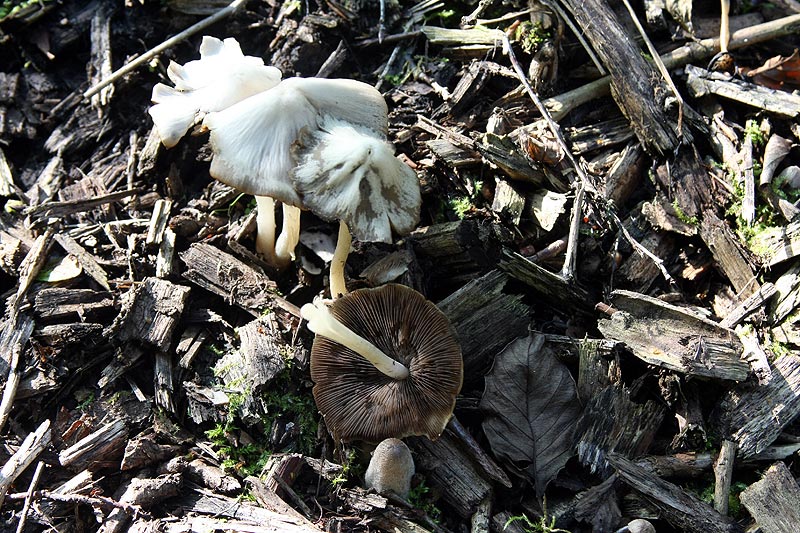 Los gings mit einer unbestimmten Psathyrella auf Holzhäcksel.