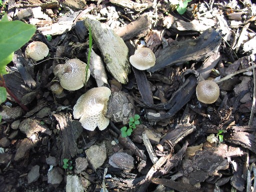 Die Pilzchen wachsen zwischen meinen Himbeer- und Johannisbeersträuchern auf relativ altem (2-3 Jahre) Rindenmulch, der Boden darunter ist sandig und eher kalkhaltig, der Standort insgesamt eher sonnig und trocken, viel Dünger gab es auch nicht, bei der Anlage des Beetes Kompost vom örtlicen Kompostwerk und ansonsten gelegentlich Hornspäne..