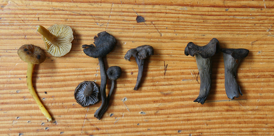Hallo zäme, ich hätte eine kleine Frage, handelt es sich bei den kleinen schwarzen Pilzen in der Mitte auch um Herbsttrompeten? Wenn nein um welche handelt es sich? Ich habe sie in etwas weniger typischen Herbstrompetenhabitat gefunden (schwierig zu umschreiben, es standen alles mögliche an Bäume rum, aber eher trockenener Standort und relative viele Fichten. danke euch Pascal