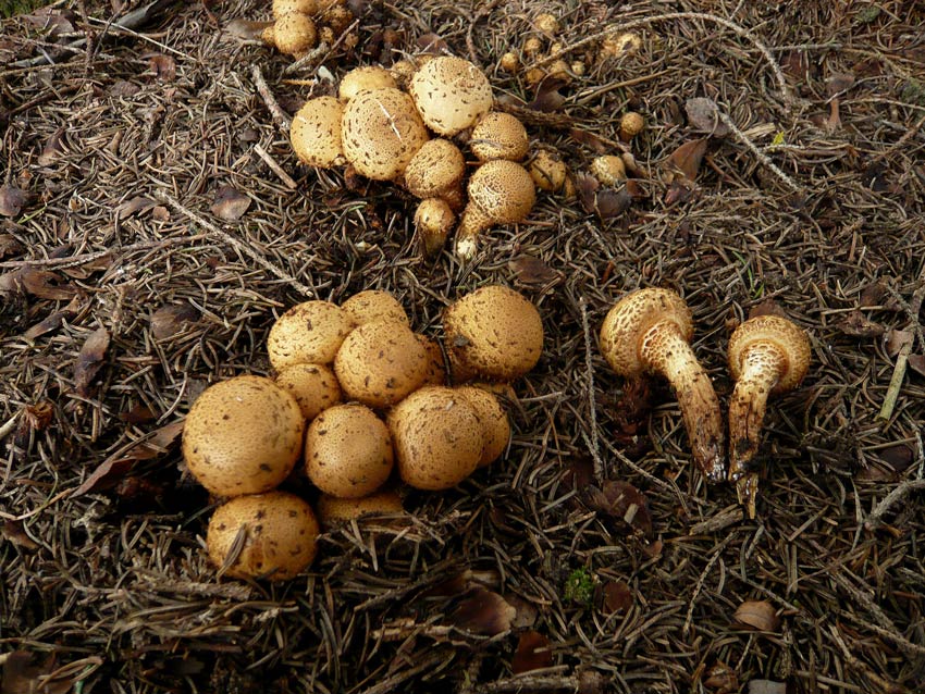 Unter einer Fichte inmitten der Wiese Sparriger Schüppling - Pholiota squarrosa