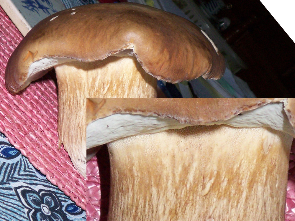Liebes Forum, vor ein paar Wochen erzählte mein Bruder, dass er einen sehr großen Steinpilz gefunden hat. Er wurde in Scheiben eingefroren (der Pilz) und für Weihnachten aufbewahrt. Jetzt hat er grad in meinen Pilzbüchern geblättert und mich gefragt, ob es ein Gallenröhrling sein könnte. Ich kann das von den Bildern her nicht so sicher sagen, meine aber, dass es tatsächlich ein Steinpilz und kein Gallenr. ist. Es fehlt doch das dunkle Netz für den G-röhrling? Die rosa Poren? Das weiße feine Netz unterm Hut ist doch ein gutes Zeichen für den Steinpilz? Will nur keine bittere Pilzsuppe haben an Weihnachten!;) Wäre nett, wenn Ihr mir kurz Eure Meinung sagen würdet! Gruß, Florian