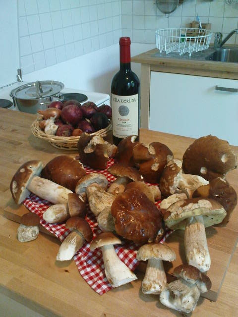 Hallo, nach einem schönen Steinpilzfund stelle auch ich mal ein Foto ein. Zuerst gab es Bruschetta mit Steinpilzen, dann haben wir Nudelteig hergestellt und Ravioli mit Ricotta und Steinpilzen gefüllt. Am Tag darauf gab es dann Bratkartoffeln mit Speck und Steinpilzen und einem Schuss Sahne. Lecker war`s! Genußvolle Grüße und bis bald Ursula