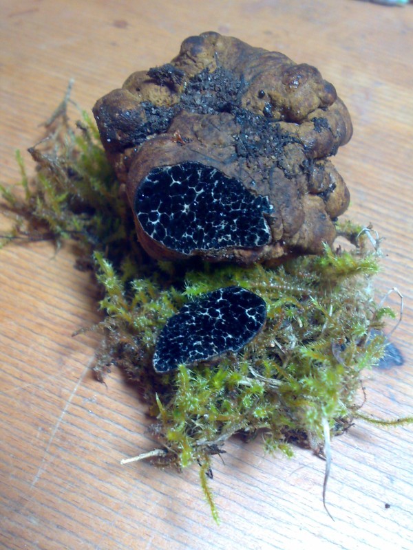 Hallo zusammen, ich hab gestern, ohne danach zu suchen, eine Schleimtrüffel gefunden. Um genau zu sein, bin ich draufgetappt. Sie war zwar unterm Moos versteckt, aber deutlich zu spüren. Fundort war unter einer Sommerlinde neben einem Sportplatz auf Kalk, Hainbuchen stehen auch noch in der Nähe.