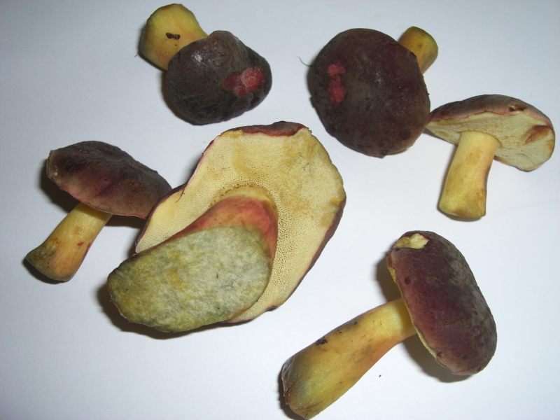 Hallo, bei meiner Steinpilztour sind mir eine große Menge dieser Röhrlinge aufgefallen. Um was für eine Art handelt es sich hierbei? Die Hutfarbe geht ins Violette, die Röhren sind gelblich und der Fuß ist teilweise rötlich. Im Alter werden diese Pilzhüte grau. Vielen Dank für Eure Tips! MfG