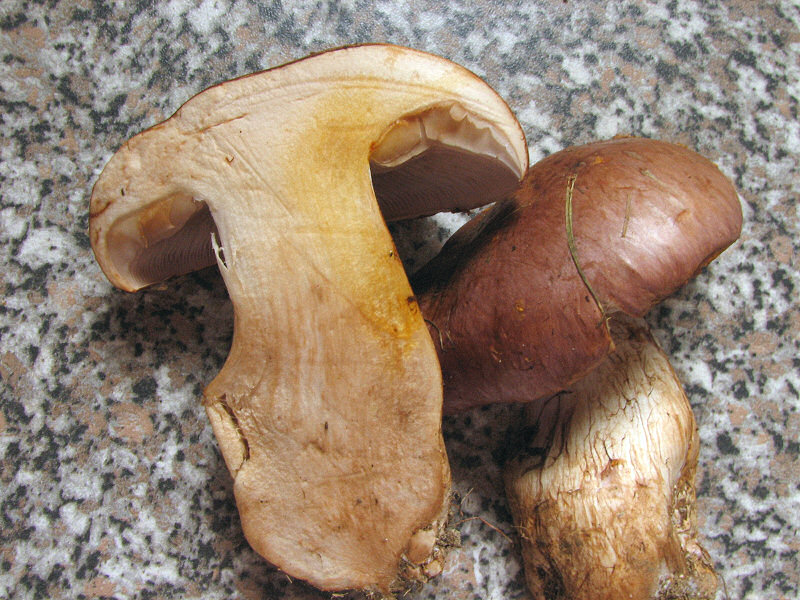 Allerdings stört mich noch immer der penetrante Kartoffelkellergeruch, außerdem habe ich den Anschnitt mal testeshalber mit Ammoniak misshandelt - und da zeigt sich dann auch die Gelbfärbung, die für C. variecolor erwähnt wird. Nur eben nicht "lebhaft", mag auch an der 9%igen Lösung liegen. C. variecolor kommt hier - zwei Kilometer entfernt im Wald - auch unter Fichten vor, und das reichlich. Nur der hier kanns ja dann nicht sein.