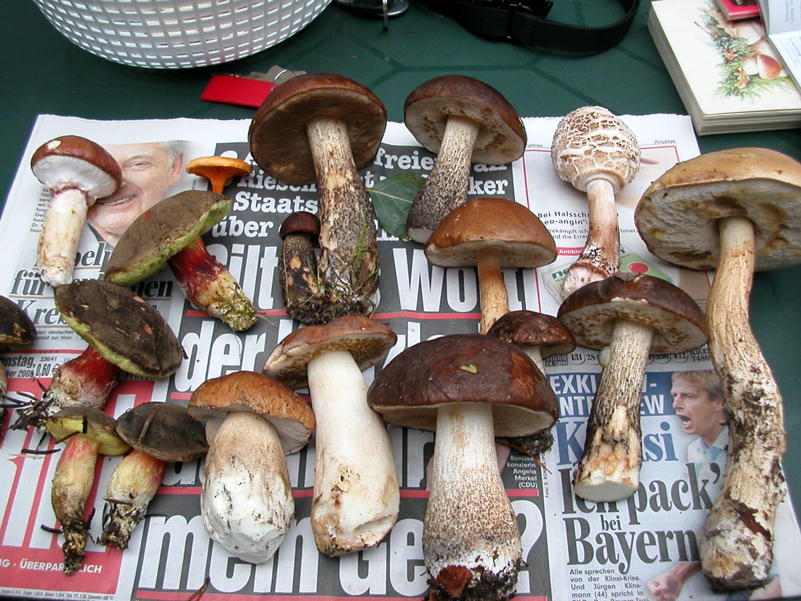 ....noch einiges zu bieten. Schöne Funde aus den letzten drei Tagen: Rotfußröhrling, Safranschirmling, falscher Pfifferling, sowie Röhrling ganz rechts(sicherlich ein Rauhstielröhrling) unter Fichte, alles andere aus Mischwald mit Kiefern und Birken.
