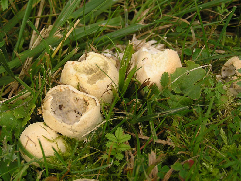 Der Rasen (die Wiese) ist voll mit Wiesenstäublingen / Vascellum pratense. Sehr zur Freude der Schnecken.