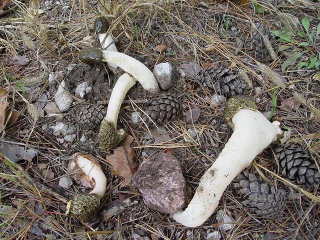 Die Dünenstinkmorchel wächst hier eigentlich jedes Jahr reichlich. Am Straßenrand, in Vorgärten in den Gemüsebeeten und wo auch immer. Dieses Jahr hat sie sogar den Platz der Gemeinen Stinkmorchel erobert. Sie wächst inzwischen auch mitten im (sandigen) Kiefernwald.