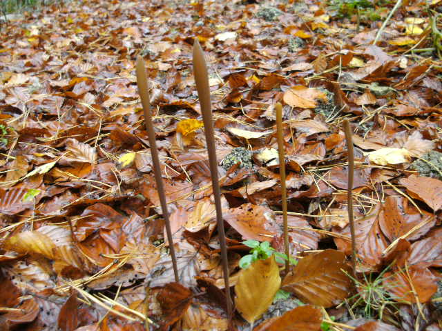 habe heute etwas gefunden, was mich sehr fasziniert hat - Erstfund. Die Dinger waren wie die Zinnsoldaten auf einem mit Laub bedeckten Schotterweg im Buchenmischwald gestanden. Habe sie leider nicht schärfer bekommen. Die größte war knapp 30 cm hoch. Im Cetto bleibe ich bei der röhrigen Keule - macrotyphula fistulosa hängen. In den anderen Büchern habe ich nichts passendes gefunden.