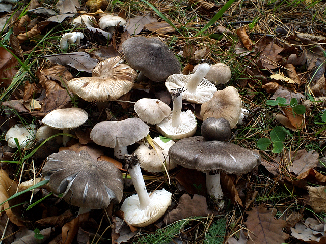 1. Auf Buntsandstein, wahrscheinlich Kiefer, am Strassenrand auf 400 m Länge alle möglichen Farbvarienten eines nicht nach Mehl riechenden Erdritterlings, von fast weiss bis fast schwarz: