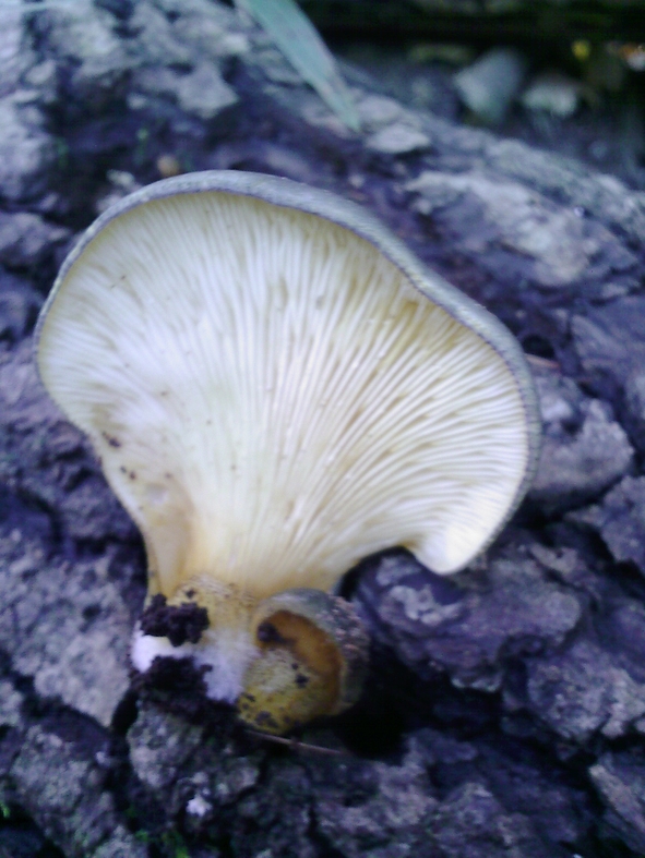 Ihr Kundigen, hier noch eine Frage zu einem leider unscharfen Bild (jaja üben, üben, üben...). Ist es der Gelbstielige Muschelseitling oder der Austernseitling. Für ersteren spricht wohl, dass unter der Huthaut (beim Aufschneiden)eine dünne gelatinöse Schicht zu sehen war. Allerdings ist von einem gelben Stiel so gut wie nichts zu sehen. Bei näherem Hingucken waren da aber die beschriebenen kleinen Flöckchen. Was sagen die Experten?