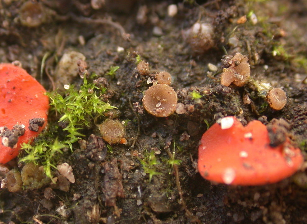... wuchsen inmitten von pulvinula constellatio (rotbrauner kissenbecherling). apothezien 0,1-0,2cm. sporen für l. patavina etwas klein (22 x 9-11). vielleicht kennt lothar die gattung gut? möglicherweise liege ich aber auch völlig falsch ...