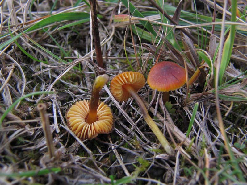 Vielleicht zwei verschiedene Arten? Beide waren recht klein, bis max. 35 mm, Hut beim weißen Exemplar bis max. 20 mm,