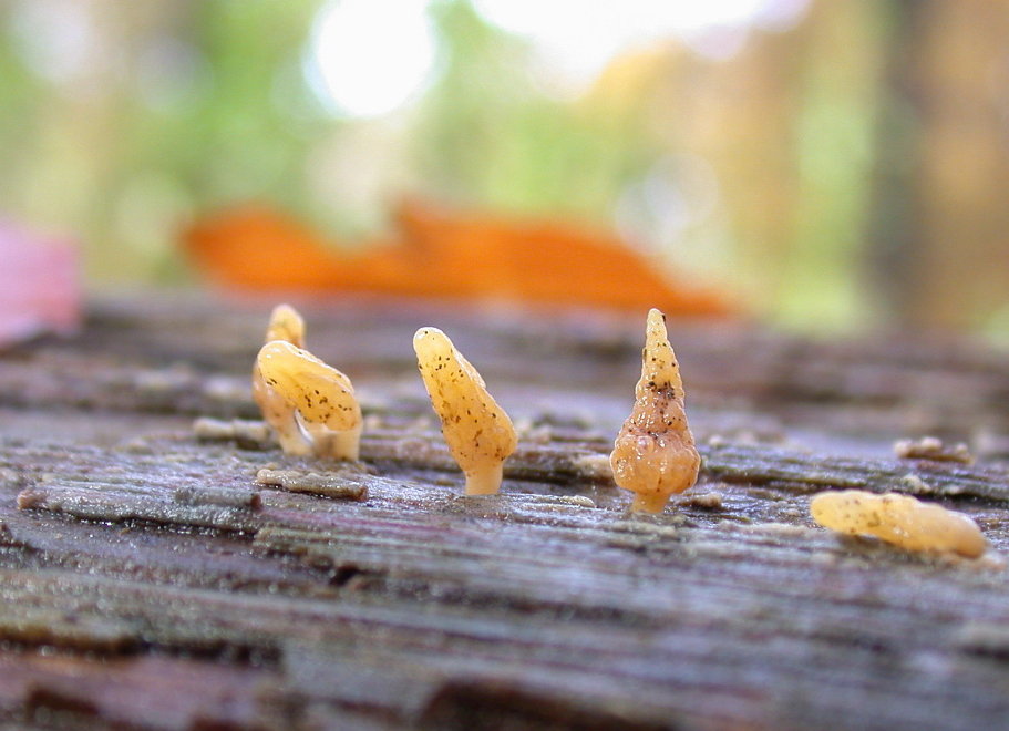 hallo zusammen, wir nähern uns unaufhaltsam weihnachten, kann man wohl nichts machen ... manche menschen glauben, sie müssten jetzt schon spekulatius kaufen, manche pilze meinen plötzlich sie seien kleine tannenbäumchen - oder doch eher eine reverenz an die morchelabhängigen hier? jedenfalls ist dies calocera glossoides, das highlight der letzten apr-exkursion. kann gut sein, dass das ein erstfund für nrw ist ...