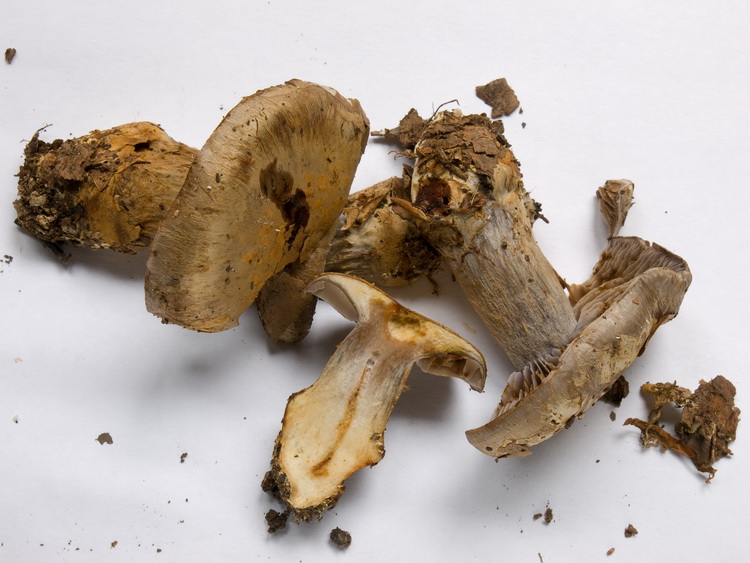 Der Pilz passt ziemlich gut auf eine Beschreibung von C. caesiogriseus J. Schff. ap. Mos., die E. Garnweidner in einem Büchlein des Vereins für Pilzkunde München 1998 ausgeführt hat. Es wäre interessant, ob jemand diesen Pilz kennt, da er z. B. mit dem Schlüssel in Moser 1983 kaum bestimmbar ist. Mein Vereinskollege Werner E. hat ihn heuer auch entdeckt. Kennt jemand von euch dieses Schwammerl? Vielleicht gibt es ja auch andere Namen dafür. Hier noch eine Beschreibung, Funddaten und Mikros: Funddaten: 14.09.2008; MTB 7934-4-4-2, 550 m, Baierbrunn, Isarleite, im Buchenwald; auf nackter Erde an einem Wurzelausläufer; bei Buche; gesellig (3 Fk); verges. mit Clavariadelphus pistillaris; Hut: bis 5 cm breit, befeuchtet klebrig, eingewachsen faserig, dunkelbraun, am Hutrand ist ein Lilastich höchstens zu erahnen (rührt vermutl. von den durchsch. Lamellen), mit ockerbraunem Velum flockig bedeckt, die Flocken bisweilen rostbraun verfärbt; Stiel: bis 4 x 1,8, Knolle bis 2,5, gerandet knollig, Färbung ziemlich undefinierbar bräunlich, an der Spitze lila durchscheinend, silbrig längsfaserig, Knolle unterseits mit ockerbraunem Velum bedeckt; Lamellen: ausgebuchtet angewachsen, dunkel lila und lange so bleibend, mit fein gekerbten weißlichen Schneiden; Fleisch: schmutzig weiß, am Rand der Stielspitze lila, in der Knolle ockerlich durchgefärbt; Geruch: schwach süßlich; Geschmack: -; Chemie: KOH (30%): auf Huthaut dunkelbraun (aur den Velumschüppchen dunkler kastanienbraun); auf Hutfleisch blass bräunlich; auf Velum (an der Knolle) kastanienbraun; HDS: -; Sporen: mandelförmig bis subcitriform, recht gedrungen, grobwarzig, in KOH ockerbraun, 8,4 x 5,2 (7,5-9 x 5-5,5), Q=1,62 (1,5-1,7);