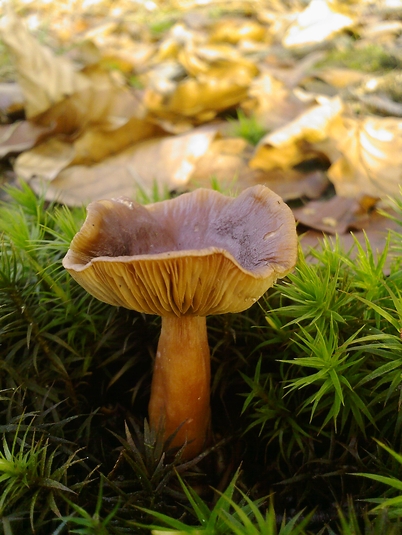 Liebe Leute, ich habe diesen Pilz in mehrfacher Ausführung gefunden. Standort: Buchen-Fichtenwald, im Moos. Die jungen haben einen kleinen Buckel, gerade Hüte, nicht feucht. Stiel hohl und brüchig. Gleichmäßig braun, auch die Lamellen, die leicht abgehen. Die Hüte der jungen sind grad mal 1-2 cm breit, die der großen bis ca 5 cm. Sie wirken sehr vergnügt, so als ob ihnen der Frost nicht das geringste ausmacht.
