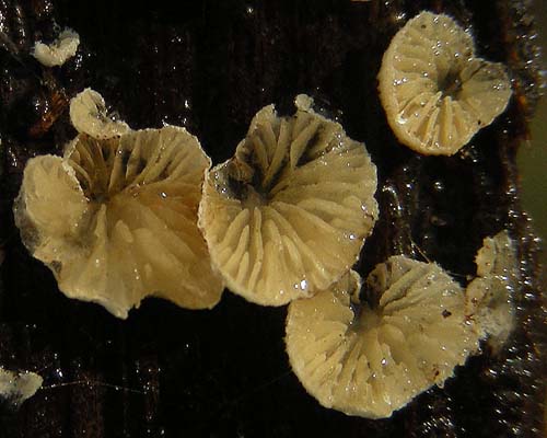 und schon wirds klarer... : Ich tippe mal auf einen stiellosen,kleinen Lamellenpilz aus