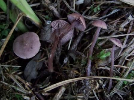 Das Pilzchen ist sicher selten und anspruchsvoll bezüglich Nährstoffarmut, aber kommt an seinen Standorten manchmal recht reichlich vor. Die Aufnahme stammt aus der Garchinger Heide (n. München). Tipp: Mit Kalilauge färbt sich das violette Pilzchen satt tiefblau.