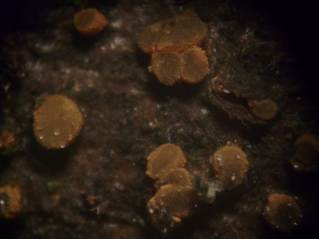ich weiß nicht, ob Ihr Euch erinnert: vor einigen Wochen habe ich einmal den Schleimpilz Licea parasitica als Rätsel gepostet. Am gleichen Strauch (Crataegus) wuchs dieser Becherling. Wer kennt ihn?